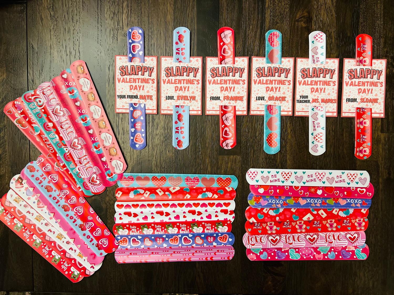 Personalized 'Slappy Valentine’s Day’ slap bracelets! Perfect non-candy treat for kids! Great for classrooms and Valentine’s Day parties and much more!